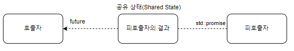 호출자가 해당 future객체에 대해 get을 호출하기 전에 피호출자의 실행이 끝날 수도 있으므로, 결과를 피호출자의 std::promise에 저장 할 수는 없다. std::promise객체는 피호출자의 지역범위에 있으므로, 피호출자가 완료되면 함께 파괴되기 때문이다.